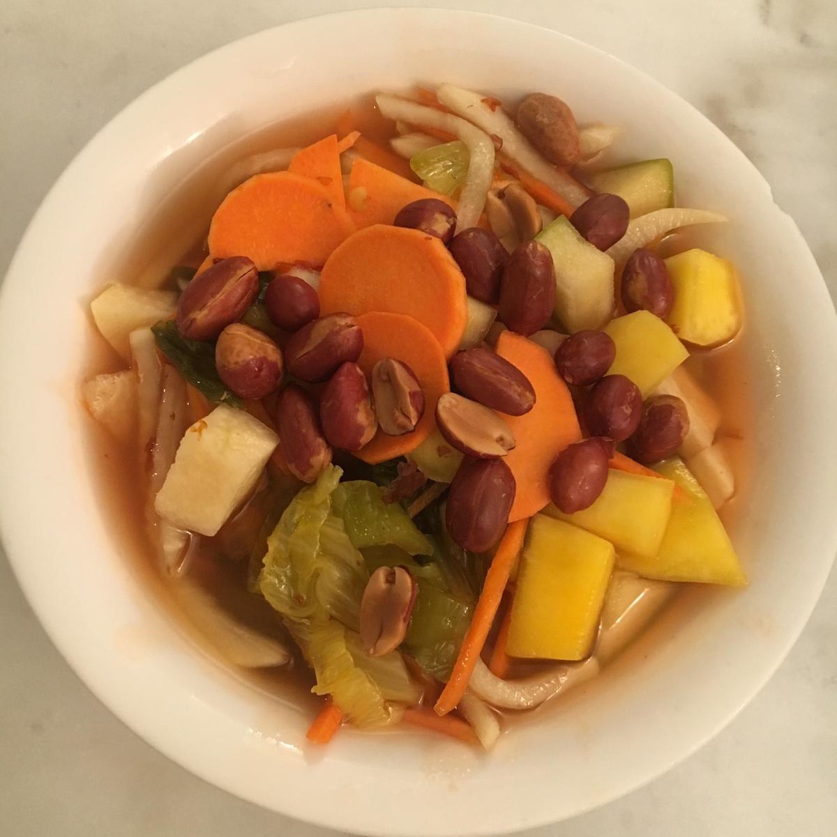 (daging ayam, bakso ikan bungkus kulit tahu, bokchoi)