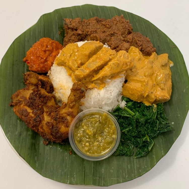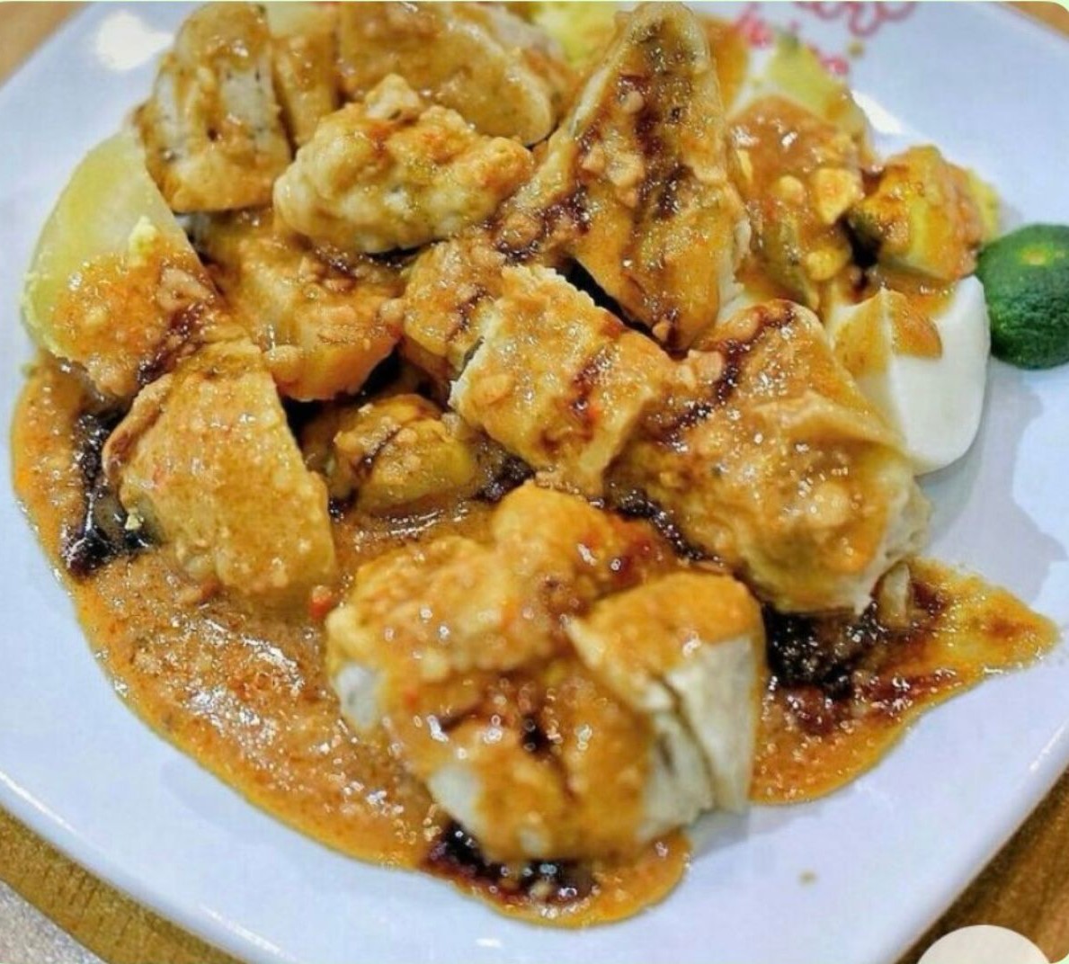 (setengah ekor ayam, pepes tahu, daun kale, kentang goreng bawang putih, kerupuk, sambal matah)